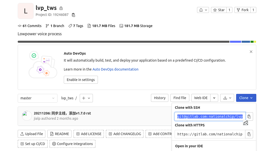 $ git clone git@gitlab.com:nationalchip/lvp_tws.git